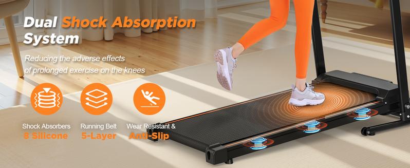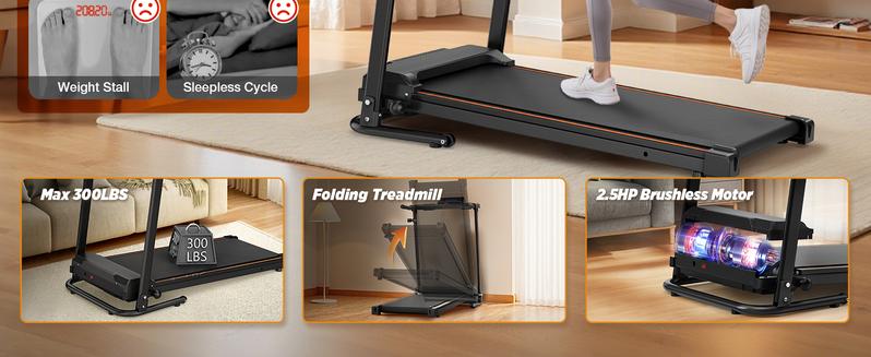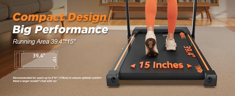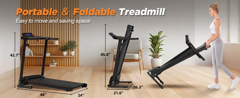Transform your living room in seconds! One-step folding shrinks it to 21.6-inch compact size. Effortlessly move with built-in wheels. 48-inch spacious running deck accommodates users up to 6'10" – big performance, zero space waste.