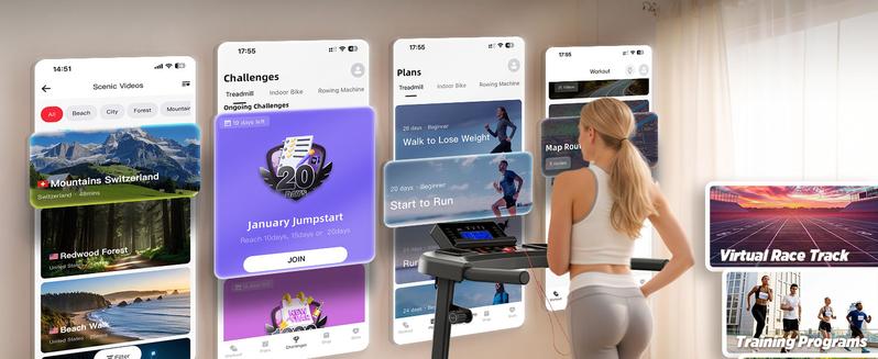 Unlock 3X connected apps for virtual races Track real-time metrics (calories/speed/mileage) on the 15-inch LCD. Sync with preset programs & video coaching – your personalized gym, powered by AI.